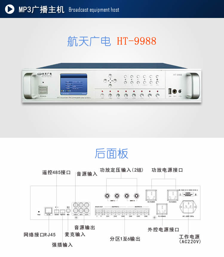 多功能彩屏MP3自动广播主机